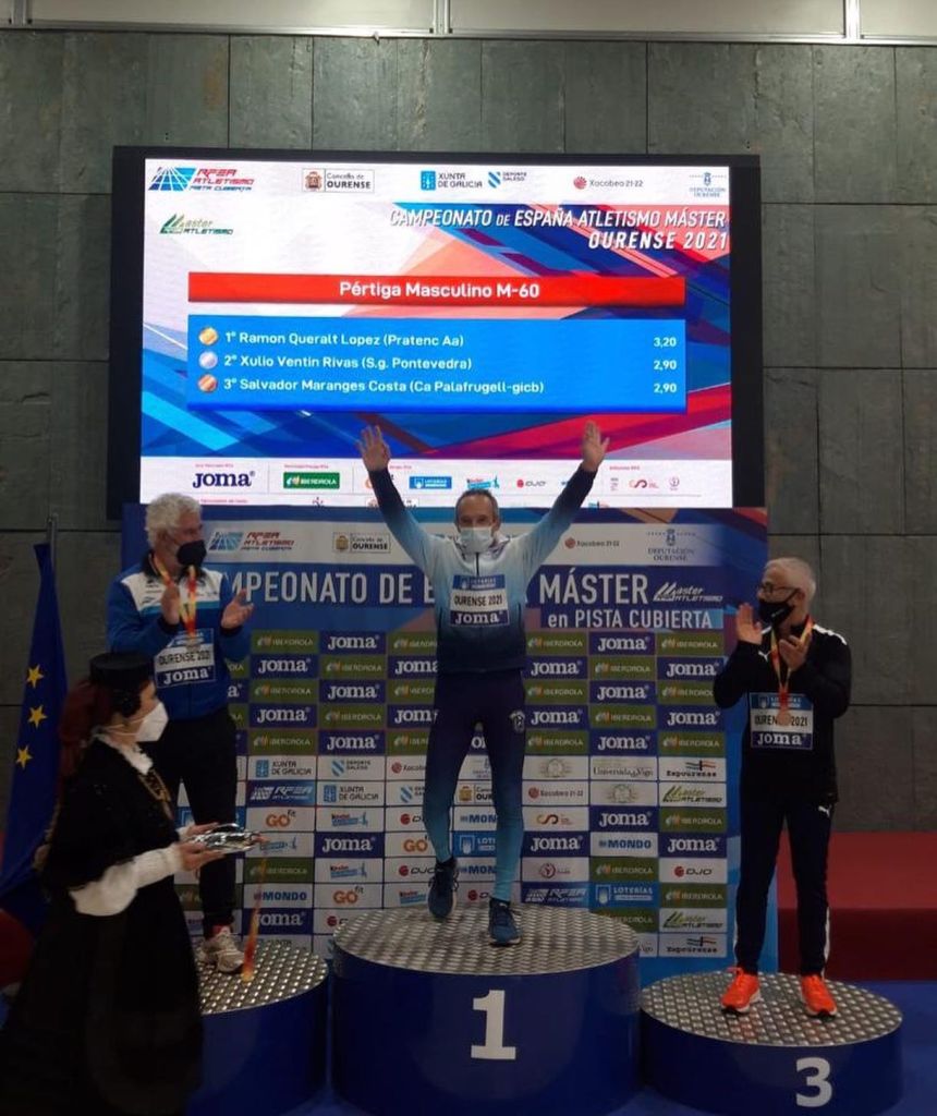 Ramon Queralt a la perxa amb una marca de 3,20 a la categoria M60.